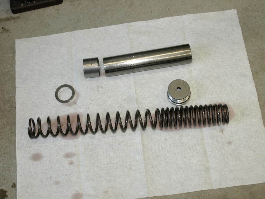 逆さにしてオイルを抜く前にスプリング抑えのカラーを抜いたら・・・・・・・。