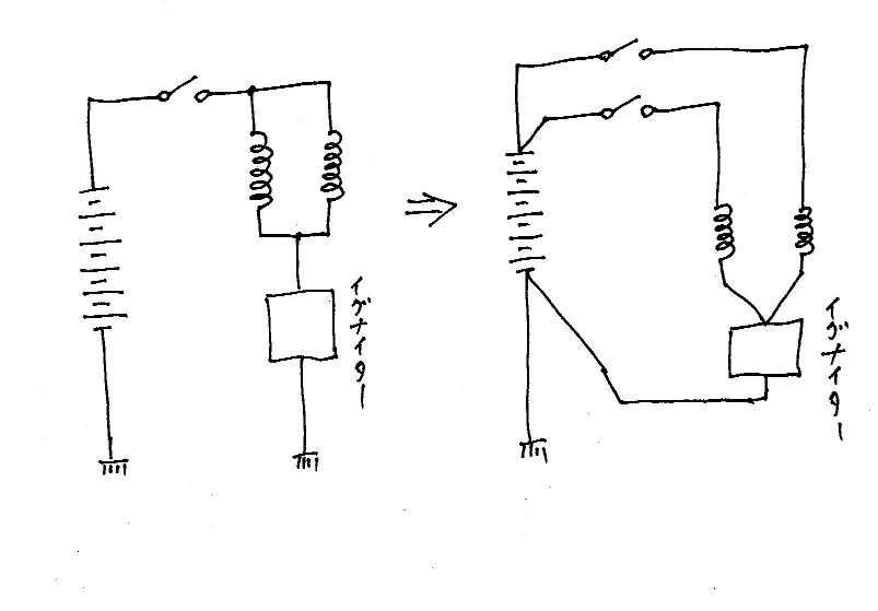 兎に角、ツインコイルにして、放電方向を理想通りにすると、燃焼は確実に良く成ります。 2号では実践済みだった、コイルへのダイレクト給電。今回mot号で実験。 この辺は、HPのBBSへmotさんが報告してくれました。 序に、イグニッションSWでエンジンストップの出来る方法も確立。 で、更に前からのネタを実験して貰いました。ツインコイルの磁気回路を接続するのです。 本当は10年前に実験したかったのですが、僕が病気でダウン。1号が2号に成り其の侭で・・・・・・。 ツインコイルと言いながら、二つのコイルは同時に働きます。 つまり二つのコアを繋いでループにすれば、二つのコイルの磁気がシリーズに成って、磁気回路のロスが激減する。と言う理論です。 二つのコイルの向きを逆に繋ぐか、同じ向きで片側のコイルの配線を逆にします。 明日は走りに行く予定なんだけど、先を越されてしまったので、どうしよう? |