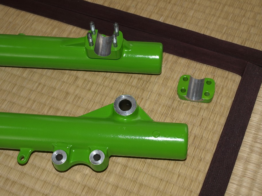 今回のフォーク塗装。色をナイショにしているのでナント、ピンクですか?なんと言うコメントも・・・。