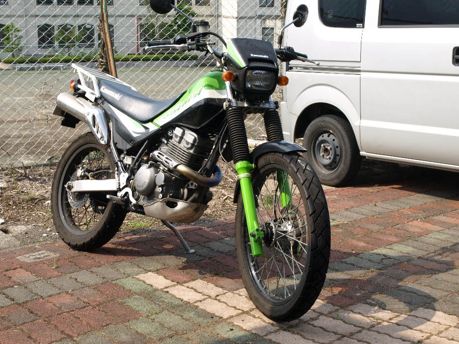 先日、キャブのセッティングとフォークの突き出し量を換えたシェルパ君。