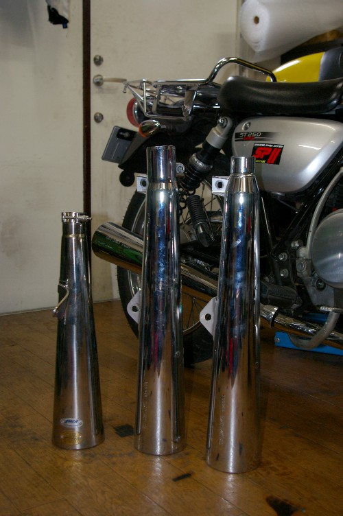 現在の手持ち。ノーマルマフラー3本にケンツのフルエキ1セット。