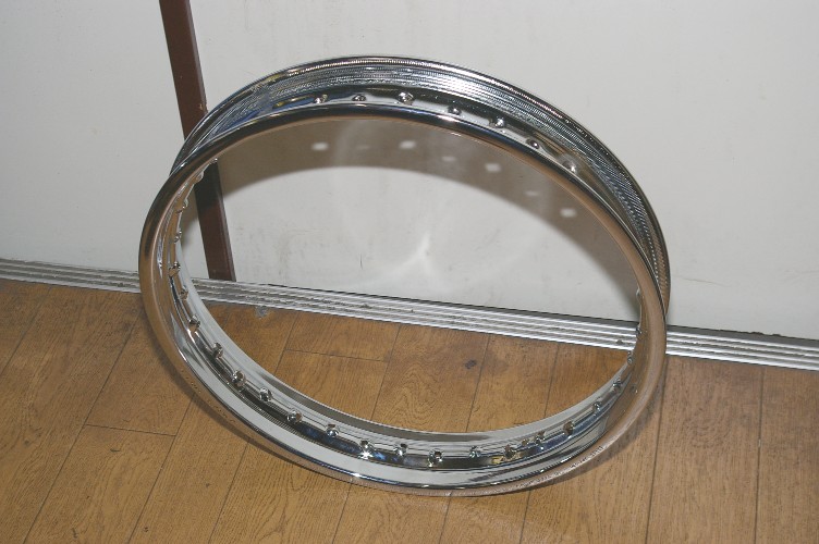 「おっ! 2.15-18!?」って、ワクワクしたの ですが、スチールリムでしたね。。。 ウチのSRも、F:2.15-19/R:2.50-18リムにしたい と常々思っているのですが、なかなか・・・ ハブとスポークは入手しているのですが。。。