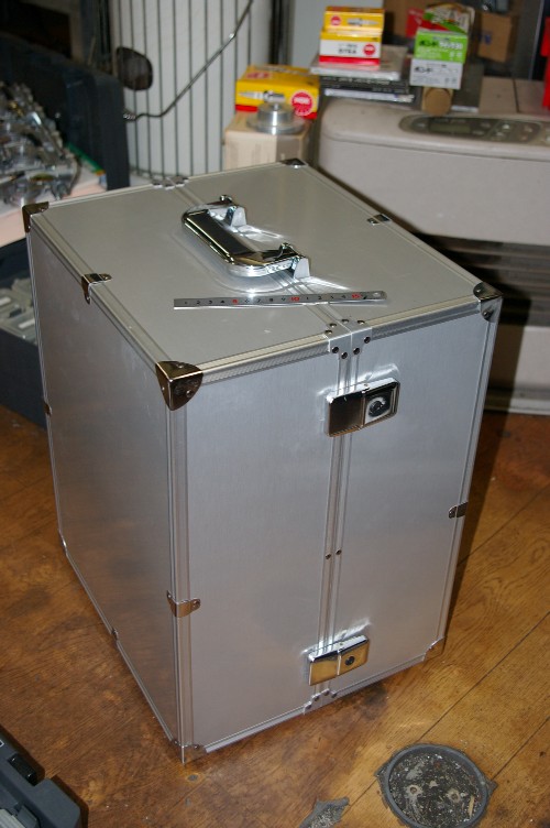 こんな大きさ。表面にはアルミの化粧坂が張ってあり、鍵まで付いている。