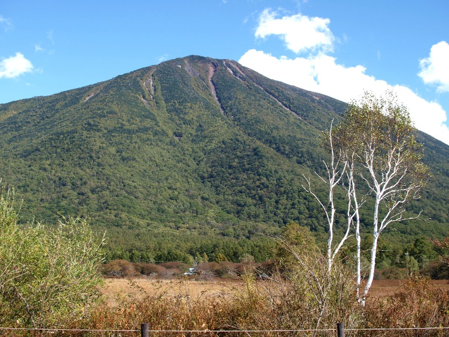 目の前の男体山。まだ紅葉には程遠く、頂上は雲の中。