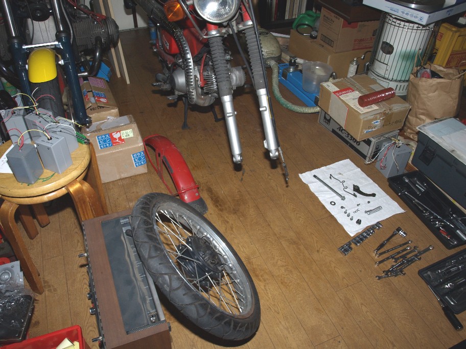 オオッ。フロントタイヤが外されている。良い子じゃなかったっけ・・・・・。と言う言葉が聞こえてきそう(汗)。