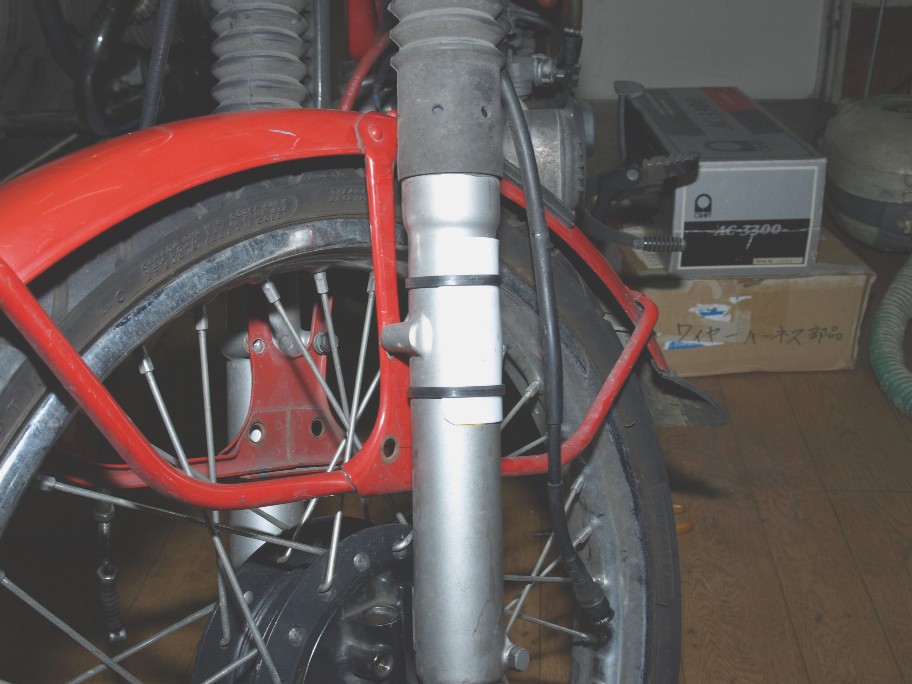 前回整備した時に磨り減っていたので、ステッカーで誤魔化していましたが、流石に無理。アウターチューブに穴が開いたらさあ大変。どうしましょう?