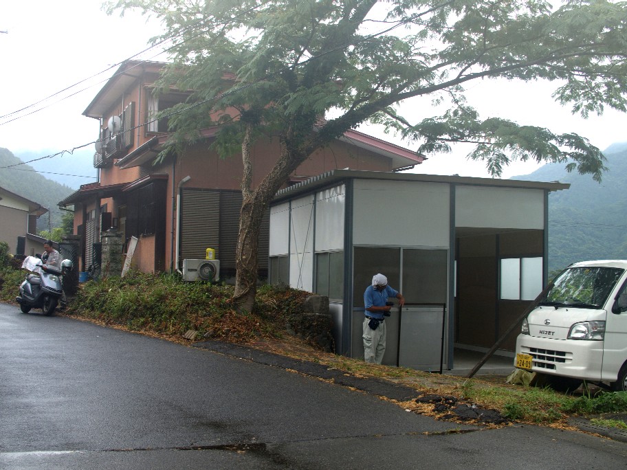 その後基礎にコンクリートを打ち直し、プレハブを建てたのです。