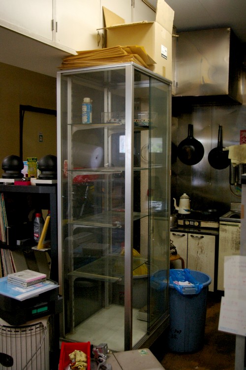 >ショーケースにクロネコヤマトのミニカーを展示するですよ^^ 勿論でーーーす。 写真で、最上段の奥に黒猫が乗っているの判りますか(笑)。