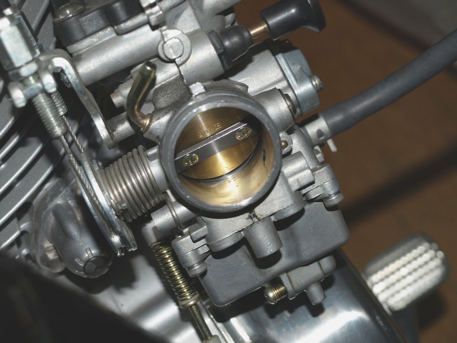負圧キャブでは関係無いか。ナンテ考えていましたけど、スローポート(バタフライバルブ真下の小さな穴)の働くタイミングはスロットルの動きに完全に連動しています。開け始めの使い易さは略此処が決定。