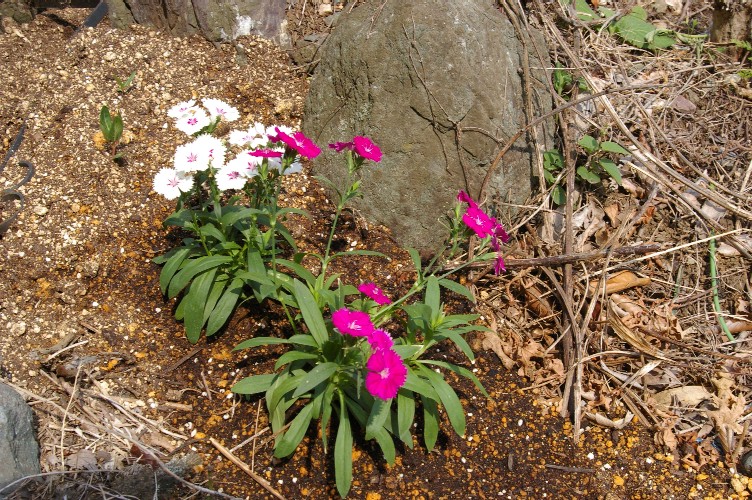 通るおばちゃんたちのチェックでは、花の咲いている苗を植えたのはバレバレなんだろーなー・・。