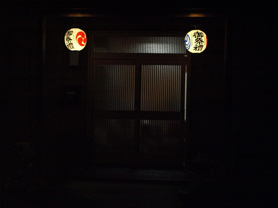 今日の午前中、提灯を下げて明かりの配線をして・・・・・・。