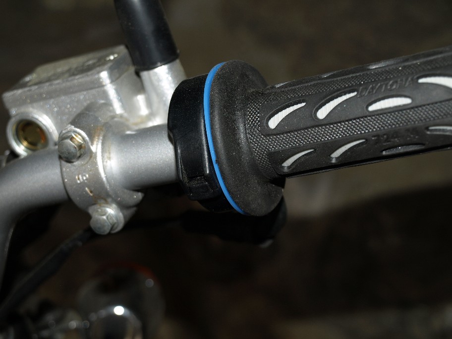 うまく施工されていますね。 僕の方は、仰る通りグリップのツバとホルダーとの間が空き過ぎていて(5mmも!)、スロットルグリップが左右に動くのが困ってます。 ホルダーに収まるカラーが削れている等問題があるかもしれませんので、スロットルグリップは注文中です。 先日、スロットルグリップを外そうと思いホルダーを開けたのですが、スロットル側のケーブルの遊びが少なくて外れませんでした。キャブ側のケーブルを緩めないとダメそうです。タンク外すのは面倒なんですよね。(汗)