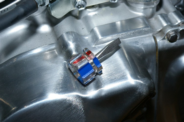 パイロットスクリューの戻し量をチェックしました(メーカー指定は21/4)。ヤッパリ・・・・・・。2回転しか戻されていません。戻し量を見る時は写真の様にドライバーにマーキング。これなら間違えません。1/2戻し量を増やしたけど、仕事で乗りに出られない。結果が判るのはいつになるのかな・・・(涙)。