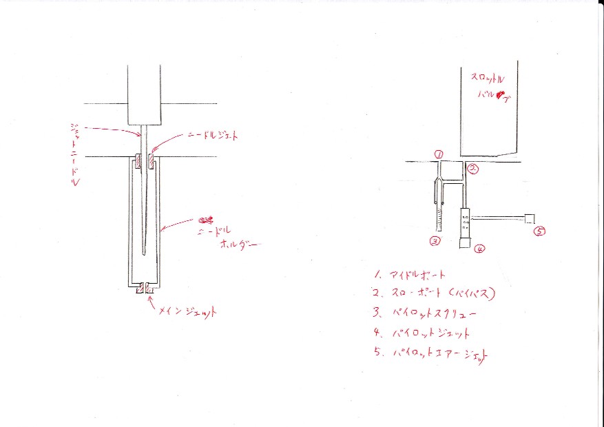 右の図面はパイロット系。要はメイン系で、アイドリング付近の混合気の混合比をキッチリ出せれば、必要は有りません。
