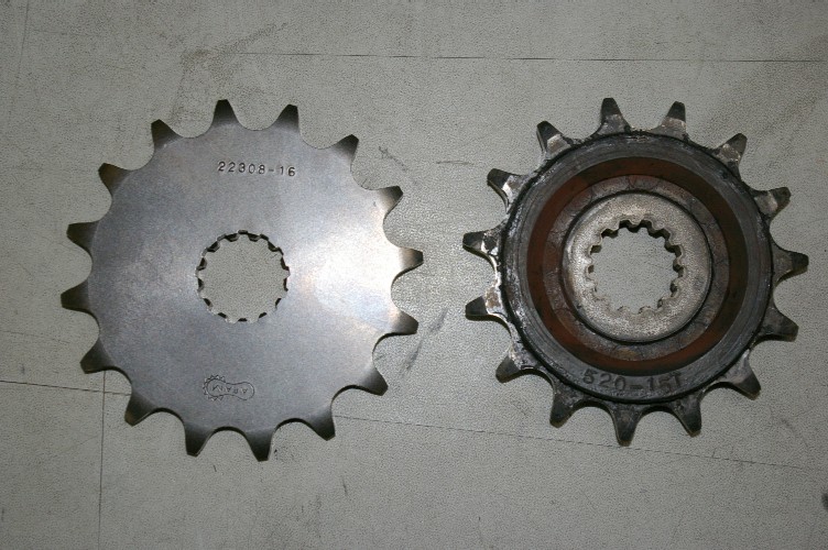 15丁から16丁への変更です。ほんのチョイ計算上ではハイギヤードに成りますが、最近トルクの出て来たST君ですので、丁度良い筈。