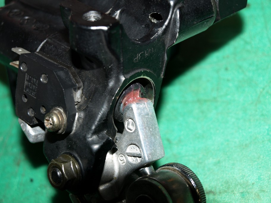 忘れていけないのが、写真の部分のグリスアップ。レバー先端がピストンと擦れあいながら押し込むのですから、ベアリングを使いたいぐらいです。