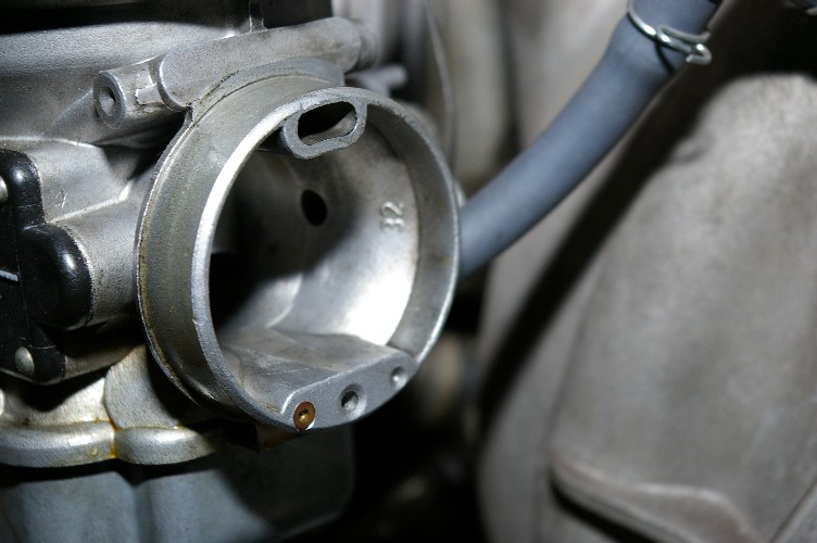 BINGの吸入口。問題のエアジェットは下の二個の穴。3個に見えますが一番奥の穴はメクラで穴は開いていません。