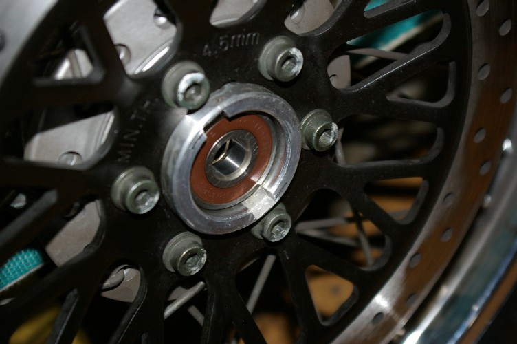 ホイール左側。本来ならスピードメーターの駆動ワイヤーの取り出し口が有ります。