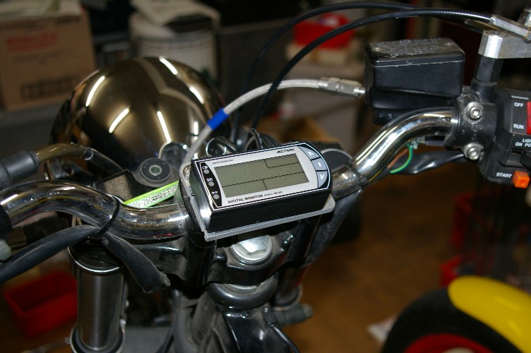 デジタコはキャブのセッティングには役に立ちます。微妙な回転数の変化が判り易いですから。 でも、走行中の回転チェックには不向きですね。 で、今迄のスピードメーターのスペース。空かせた侭のピンキー君では有りません(笑)。 何を企んでいるかはナ・イ・ショ。