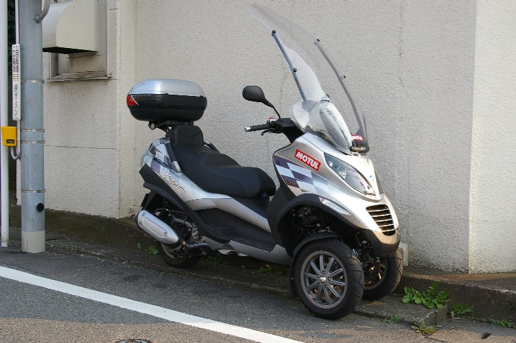 およよMP3ですね。違和感ありますよね。 ピアジオクォーサーエンジンは水冷ですが、かなり熱くなります。営業の方が何を使っているのか(純正指定粘度:5W40)興味あります(笑)。