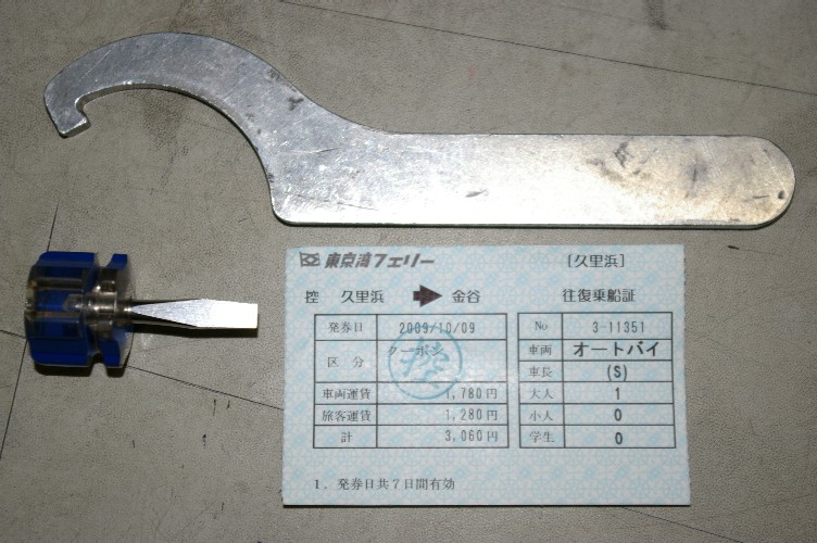 今回出番の無かった工具2個。リアサスのプリロード調整フックレンチとPS調整用のマイナスドライバー。