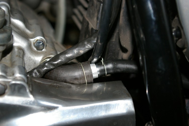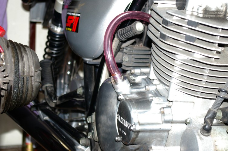 リターン側の配管。エアクリボックス最下部から引いていますから、溜まったオイルは戻されます。