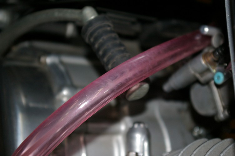 走行後のブリザーホース。