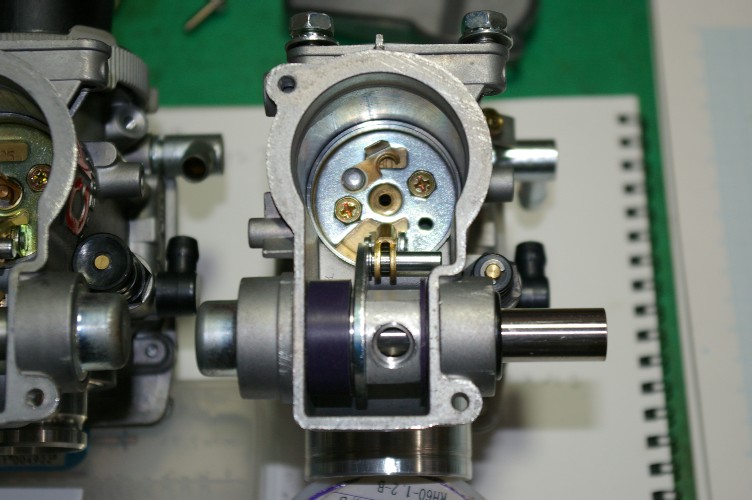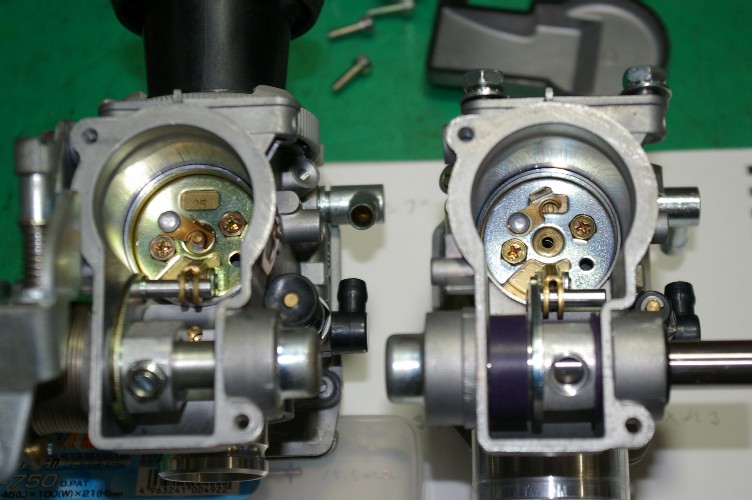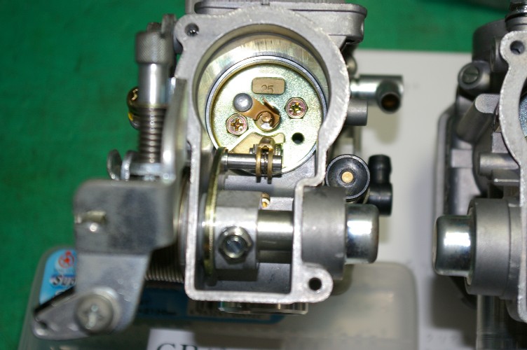 リターンスプリングの意味は、あくまでもスロットルバルブを押し下げるのが目的なので、バルブ直が一番良い筈なんですね。 遠くにする程、途中のガタが問題になって、ガタ分スロットルが閉まらなくなる筈なんです。 で、キャブに入れたい・・・・・難しいですけど何とかしたいですね。
