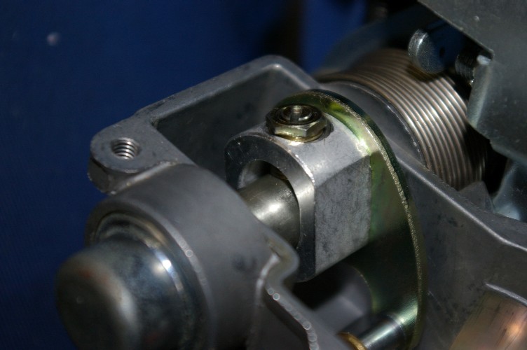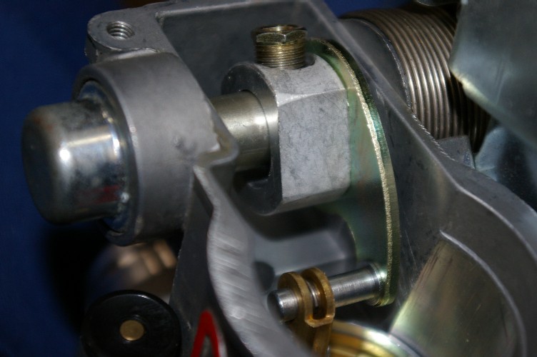 写真のリンク部。楕円の穴でシャフトとリンクの位置関係を調整出来るように成っています。