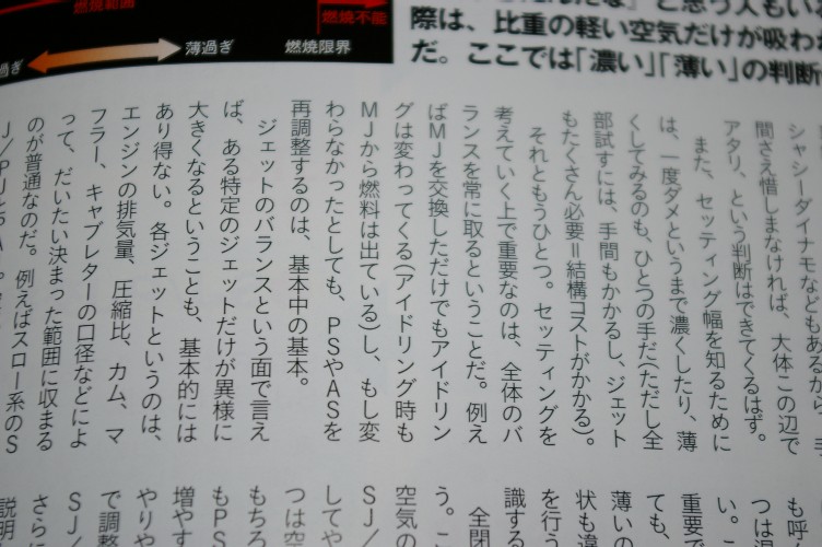 昨日の電話後、拒否設定を見直しましたが、なーんも設定していなくて・・・・。 で、今日も残業(19:00過ぎ)でキャブ弄っちゃいました(笑)。もうちょいと判ると、我慢できません(汗)。 ストレートを1ランク太く(一昨日の試乗で良い感じだったので、更に同じ方向へ。行き過ぎないと適正か判りませんから)。 室内でのエンジン始動では、更に良い感じ。 問題は走ってですけど・・・。