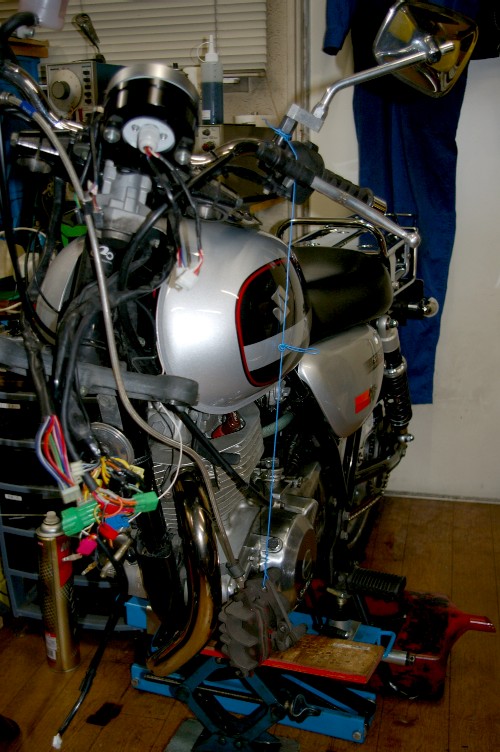 今回の一番の目的は、ステアリングベアリングのメンテです。5年間25000km、一度もメンテを受けていないんです。 実は前回のフォークオイル交換時に気付いていたんです。ベアリングの動きが変だぞって(汗)。 走って気付くレベルではないんですけどね。 で、序に・・・・(この序が危ない・・)。 RTパパさん。 僕も散々失敗して辿り着いた答えです(笑)。