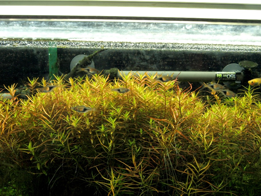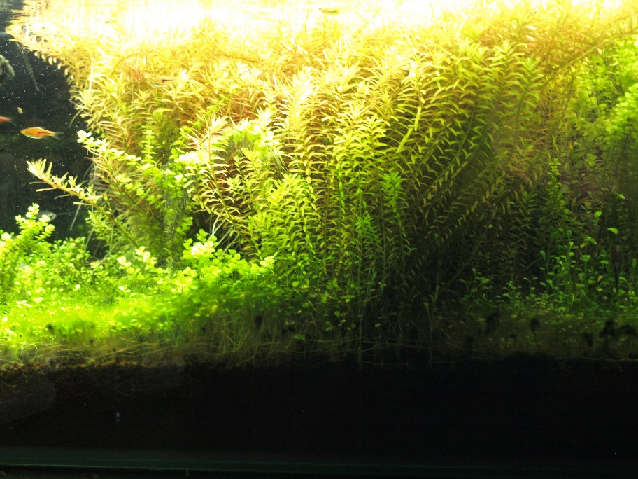 正直、水の悪化を覚悟していました。 ところが・・・・・・。 水の透明度は更に上がり、油膜は丸ッ切り見られなくなった。 ナンデ・・・・・・・? ここからは仮説です。 ロタラの密植具合は半端では有りませんでした。 床屋の散髪と同じ感じで、鋏でジョキジョキ。 方法として、水面まで届いたロタラを、半分以下の長さに切り揃えるだけ。 植え替えを一切しなかったんです。 ロタラって丈夫ですねー。残った切り株から新芽がドンドン出てくる。 此処でヤバイのは切った1本の茎から数本の新芽が出るのです。 つまり、増えちゃうんです。 此れを何度も繰り返したので、密植具合は半端ではなく、紛れ込んだ小型魚は、脱出に苦労しているのを何度も見ました。 最後は、魚も入れない。 こう成ると、ロタラの中は止水状態だったかと・・・。 水槽を維持するのに、止水の場所はNG。 如何に全体に水を回すか? 今の状態なら止水域はゼロと思います。 結果、水槽の状態が良く成った。 CO2が余らないのも、光が下まで届く様になり、グロッソが使っちゃう(グロッソからの気泡が増えた)。 と考えると納得出来ます。 何事も行き過ぎは駄目ですね。 |