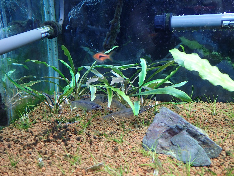 正直、水の悪化を覚悟していました。 ところが・・・・・・。 水の透明度は更に上がり、油膜は丸ッ切り見られなくなった。 ナンデ・・・・・・・? ここからは仮説です。 ロタラの密植具合は半端では有りませんでした。 床屋の散髪と同じ感じで、鋏でジョキジョキ。 方法として、水面まで届いたロタラを、半分以下の長さに切り揃えるだけ。 植え替えを一切しなかったんです。 ロタラって丈夫ですねー。残った切り株から新芽がドンドン出てくる。 此処でヤバイのは切った1本の茎から数本の新芽が出るのです。 つまり、増えちゃうんです。 此れを何度も繰り返したので、密植具合は半端ではなく、紛れ込んだ小型魚は、脱出に苦労しているのを何度も見ました。 最後は、魚も入れない。 こう成ると、ロタラの中は止水状態だったかと・・・。 水槽を維持するのに、止水の場所はNG。 如何に全体に水を回すか? 今の状態なら止水域はゼロと思います。 結果、水槽の状態が良く成った。 CO2が余らないのも、光が下まで届く様になり、グロッソが使っちゃう(グロッソからの気泡が増えた)。 と考えると納得出来ます。 何事も行き過ぎは駄目ですね。 |