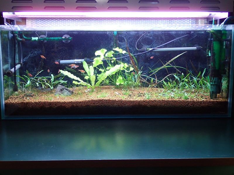 覚悟はしていたんですけどね・・・・。 コケの発生は無いのですが、薄っすらと油膜が出て来ました。 取り外したエーハイムの油膜取りを付けても良いんですが、あの油膜取り、水面の高さに敏感なんですね。 夏場は良いのですが、湿度の低い冬場は水の蒸発が増えるので、水面維持に結構気を使うのです。 要は、フィルターをもっと活発に働かせたい。フィルターを働かせるには酸素が必要。 昼間は光合成で水草が頑張りますけど、夜間は・・・・・。 薄々気付いてはいたのです。夜間にCO2が増えない。と言う事は酸素不足でフィルターが働いていない。 とりあえず、夜間エアレーションを始めます。 理想は、昼間はCO2。夜間はO2を添加。 実は、酸素ボンベをネットで探したのですが、売ってません。 現在CO2の充填を頼んでいる会社に話して見ようかと思っています。 |