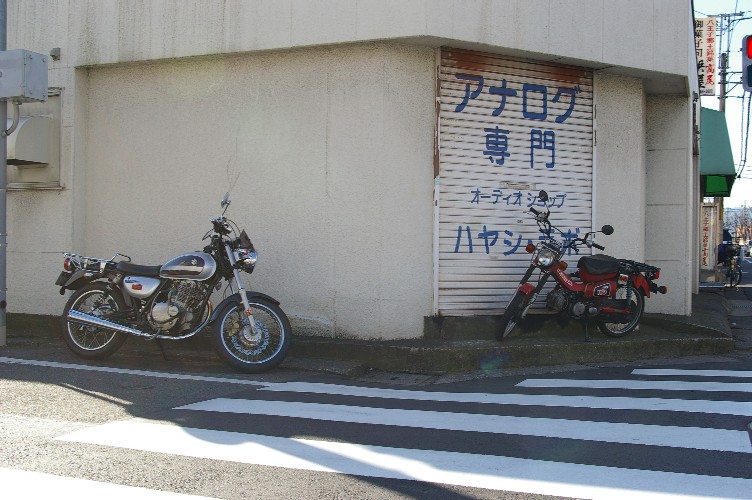 今朝の僕の店の前。ハタカブ君とST君がノンビリと・・・・・。
