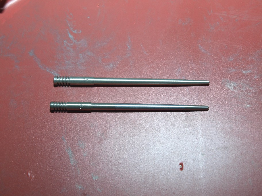 削り終えたニードルとノーマルニードル。どちらが削った方か判りますよね。テーパー部を主に削っています。