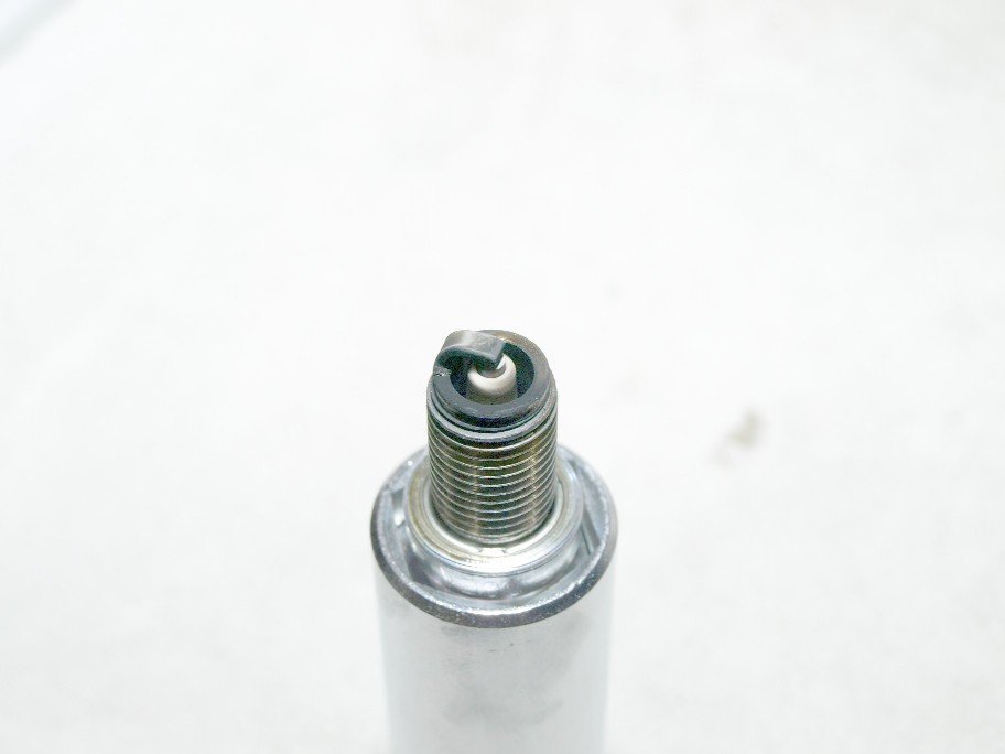 帰ってすぐに見たプラグの状態。最初の試乗では真っ白だっのに、若干かぶり気味。