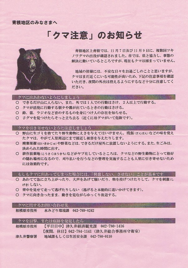 『熊、捕まったそうですよ。』 なんか、捕まった熊が可哀想と・・・。 人間を襲ったりしていないのにね。 熊汁にしないで、山奥で開放を・・。