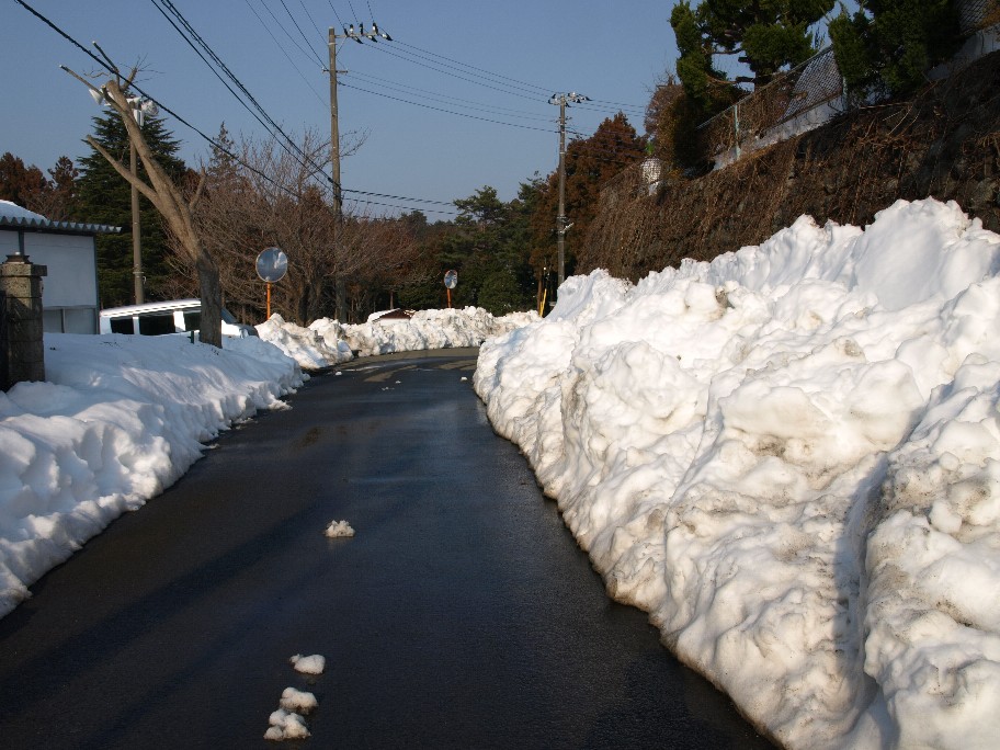朝に凍りつきますから。 道路に撒く訳にも行かないで・・・。 隣のばあちゃんの名言。 『夏には融けるよ。』 今更じたばたしても始まらないので、まあノンビリと・・・(笑)。