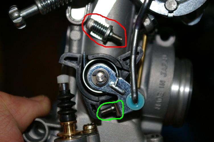 二本とも長いネジに交換(写真は交換済み)してポンプのストロークを1/4~1/2スロットル開度にセット。