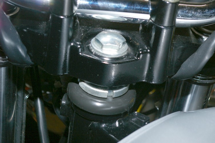 最初の試乗。ハンドリングがダルイ。落ち着いていると評価をする人もいるかもしれないけど、僕には絶対ダルイ。最初はタイヤの太すぎの所為かとも思ったけど、直進時に若干の蛇行。ヘヘヘ、ステアリングの締め過ぎだ。前のオーナー、この状態で3000km以上も走らされた事になる。売りつけたバイク屋さんの責任。