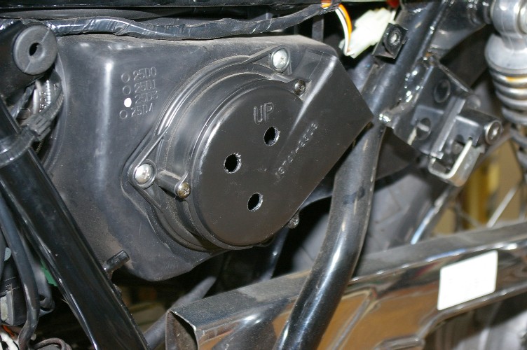 チョット悪戯です。現在のエアクリの入り口は吸気音を嫌ってかなり絞り気味。騒音規制が厳しくなっているのでメーカーとしては当然の行動です。