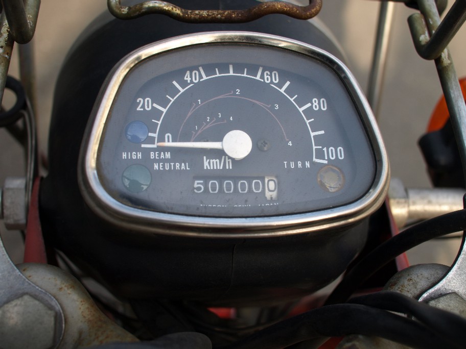 打撲と内出血の完治は時間がかかりますね。僕は2年半前に、仕事が変わって一ヶ月後の事でしたが、街乗り用にしていたヤマハ225で、禁止区域で突然UターンしたP・カイエン(バイク便のバカ社長が運転)と勝負してしまいました。(汗) ちょうど担当していた研修会の時期でしたので、鎖骨骨折&全身打撲のボロボロ状態で仕事に出ていましたが、完治まで半年かかりました。 110ccで5万kmとは走りましたね。高速も使わずに。250クラスでも5万走ると、けっこうガタが出てきますよね(セローの初期型は4万で6速ギヤが欠けました:汗)。 僕の80は22年で7.5万kmですが、一時期、片道約50kmの通勤をしていたときは、やたら距離が延びました。一年で4~5回オイル交換していましたから。