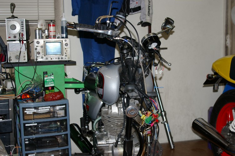 今回の一番の目的は、ステアリングベアリングのメンテです。5年間25000km、一度もメンテを受けていないんです。 実は前回のフォークオイル交換時に気付いていたんです。ベアリングの動きが変だぞって(汗)。 走って気付くレベルではないんですけどね。 で、序に・・・・(この序が危ない・・)。 RTパパさん。 僕も散々失敗して辿り着いた答えです(笑)。